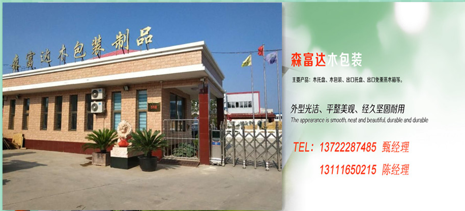 定興縣森富達(dá)木包裝制品有限公司,主要產(chǎn)品:木托盤、木包裝、出口托盤、出口免熏蒸木箱等。能出據(jù)出境貨物木質(zhì)包裝除害處理標(biāo)識加施防偽熏蒸證明。該產(chǎn)品采用優(yōu)質(zhì)硬木材料,確保托盤品質(zhì),外型光潔、平整美觀、經(jīng)久堅(jiān)固耐用,托盤使用周期長,安全穩(wěn)定,具有承載量大,成本低,無蛀蟲等特點(diǎn)。適用范圍:物流、機(jī)械電子等行業(yè),我們的產(chǎn)品外形美觀,質(zhì)量可靠。交貨及時(shí)講究信譽(yù)。有生產(chǎn)和經(jīng)濟(jì)上的實(shí)力。我們的產(chǎn)品已先后出口到美國、韓國、印度、意大利、俄羅斯及眾多國家。得到了國內(nèi)外客戶的廣泛贊譽(yù)與認(rèn)可。咨詢熱線:15930439758 陳經(jīng)理